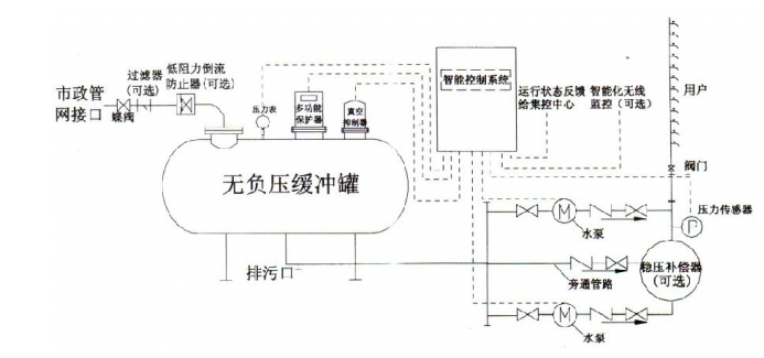 無負壓供水系統是一種新型的二次給水設備,適用于如高層建筑,公共場所,商用大廈,農業灌溉,制造業等等的需要供水的場合場合。我司無負壓供水系統產品采用全自動智能控制控制設備,客戶只需將幾個轉換開關都打到自動檔,無需人工操作
