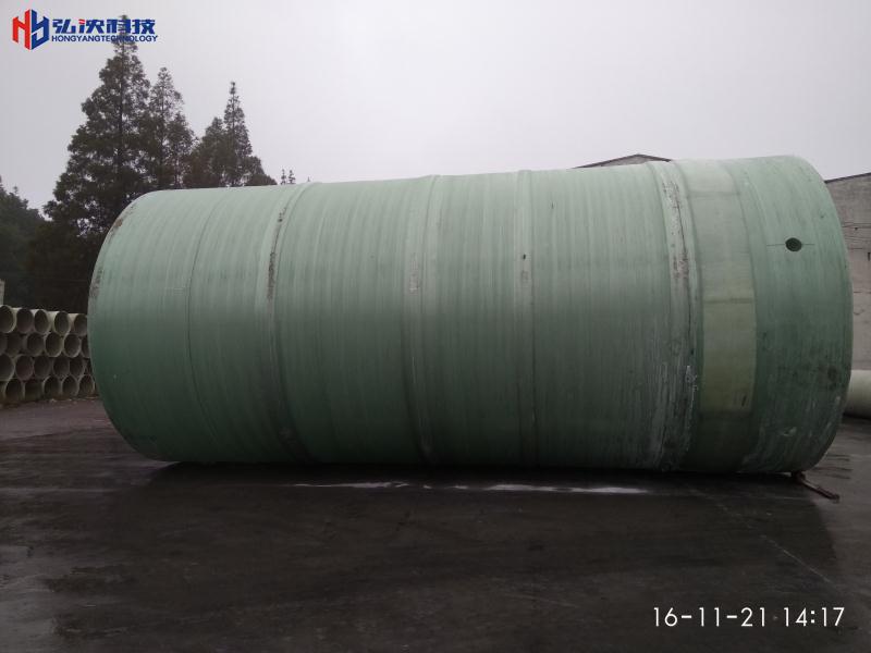 一體化污水提升泵站本體是采用玻璃鋼纖維機械纏繞工藝,外形為圓筒形,,針對項目需要處理的污水量制定筒體的直徑和高度。在筒體上分別留有進水口和出水口,分別和管網(wǎng)連接,污水或雨水通過市政管路自流入泵站玻璃鋼筒體,筒體內(nèi)設(shè)有壓力傳感器或者液位傳感器系統(tǒng),當液位達到一定高度的時候傳感器將信號傳送到控制系統(tǒng),控制系統(tǒng)控制潛污泵啟動。潛污泵啟動后將污水通過不銹鋼壓力管道提升到泵站筒體的出水口,泵站出水口和市政管網(wǎng)連接,污水進入管網(wǎng)后排放到污水處理站。當筒體內(nèi)水位下降到一定液位后控制系統(tǒng)發(fā)出停泵信號,水泵停止。如此周而復始,為一體化污水提升泵站的整個運行流程。