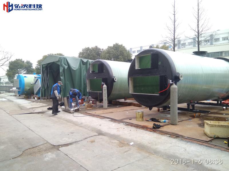 地埋式玻璃一體化泵站支持定制,認準弘泱科技一體化預制泵站廠家,泵站主體為復合纏繞一體化玻璃鋼筒體,筒體防腐能力強,可以實現全自動無人值守控制系統。