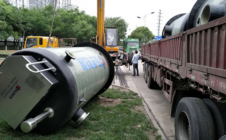 預制泵站廠家生產的一體化泵站是一種室外安裝的、地埋式泵站,占地面積比較小,而且可以適用于多種地質條件。在工廠完成生產之后成品出廠,到現場后進行施工安裝,施工簡單、工時短,成本低。