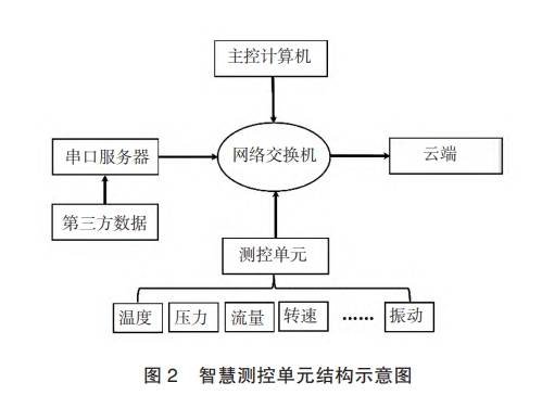 智慧測控單元由測量模擬量的模塊、振動模塊和主控計算機組成。模擬量主要包括:流量和壓力信號,通常由電磁流量計和壓力變送器轉換成4~20 mA 信號,或通過現場總線傳輸數據;溫度信號,通常由溫度傳感器(如 PT100)接入溫度模塊通過現場總線傳輸數據:電量,主要包括有功功率功率因素、電流和電壓等。