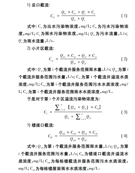總口截流、小片區截、樓道口截流三種截流方式對受納水體水質影響的分析經上述公式推導分析,因Q.Q、Q.不受截流方式變化而改變,但不同的截流方式,受匯水面積及降雨歷時的影響而不相同,根據極限強度理論,降雨歷時的變化不及匯水面積的變化對雨水量的影響大,尤其是當截流片區劃得更詳細的時候,因降雨歷時更小,Q.則更大,因而 C<C就會更明顯,很明顯,對于樓道口截流,匯入污水管的雨水只有屋面收集的雨水,故而這種截流方式因混入的雨水量最少,截流的污染物濃度最大,對于小片區截流,由于匯水面積不僅有屋面匯集的雨水,還存在巷道及側墻匯水面積產生的雨水量,這就導致污染物濃度隨匯入雨水量的增加而導致截流污染物濃度有所降低,對于總口截流,由于匯水面積在小片區截流的基礎上再增加服務范圍內道路排水,進而再次稀釋污水水質濃度。