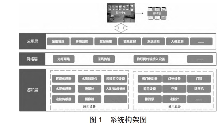 應用層即泵房管控平臺,管理人員在監控中心或者通過移動端設備訪問管控平臺,實現對泵房的泵組管理、環境監控、能耗管理、系統巡檢、入侵監測、數據管理、表計監測等管理。