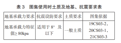 根據筒徑劃分,地基處理的方式見表2,圖集使用時的地基承載力要求、土質狀況和抗震設防要求見表3。