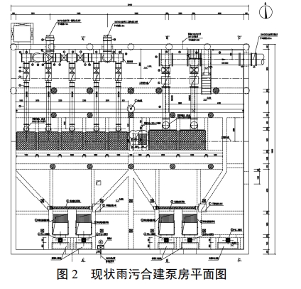 現狀雨污合建泵房并無土建擴容的可能,受土建尺寸的限制,經反復設備選型、計算和土建尺寸復核,擬將原泵房內2臺規格為0.5m'/s雨水泵更換為 1.0m'/s,同時新增1臺1.0m'/s雨水泵,使雨水泵房的提升能力由原 1.0m'/s 增加到 3.0 m/s.
