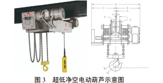 本工程受泵站內空間限制,選用普通電動葫蘆難以滿足安裝要求,需選用超低凈空電動葫蘆,